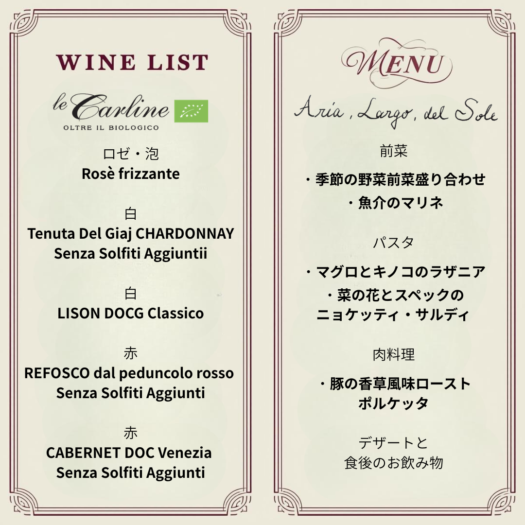 「ヴェネトのオーガニックを味わう夜」レ・カルリーネ × 伊崎シェフ コラボディナー開催